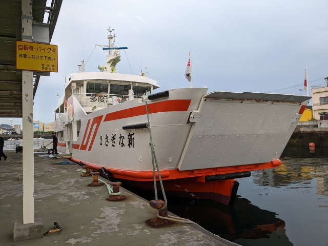 この船は高見島も経由するため、日帰りで2島めぐりができる!そう思って計画を立てていたのですが、どのパターンで考えても片方の島の滞在時間が約5時間・もう片方が約2時間という組み合わせになってしまいます。5時間滞在は時間を持て余しそうなので、今回は佐柳島だけにしました。