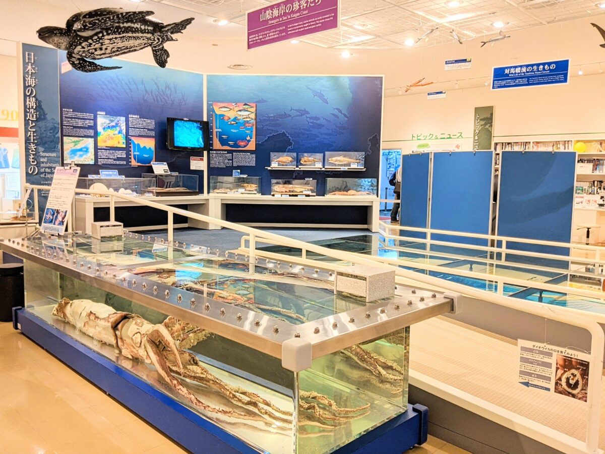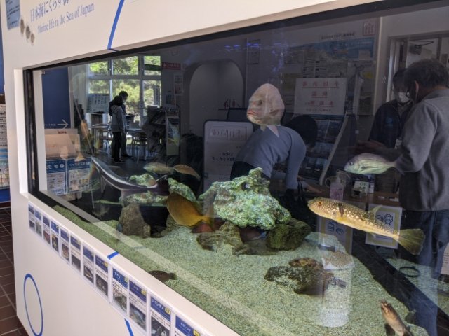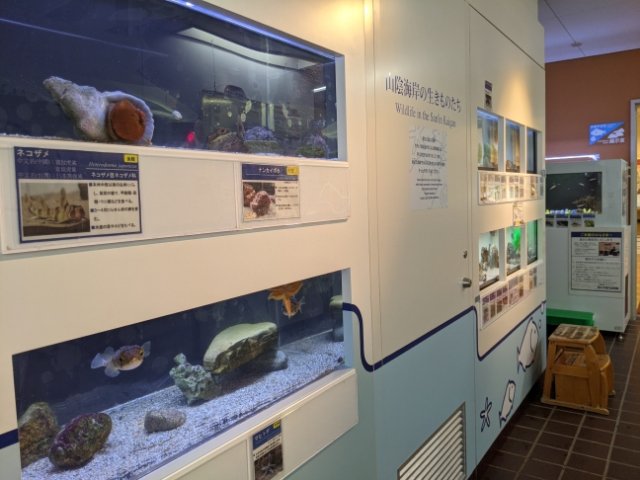 日本海に暮らす生き物の生体展示もあります。水槽は10基ほどと小規模ですが、ミニ水族館気分で楽しめます。