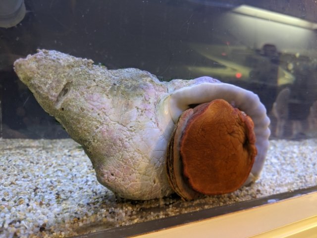 こちらのへばりついた貝はナンカイボラ。あの法螺貝の仲間です。15cm以上あるためずっしりと大きく感じますが、ホラガイの中では小型種とのこと。