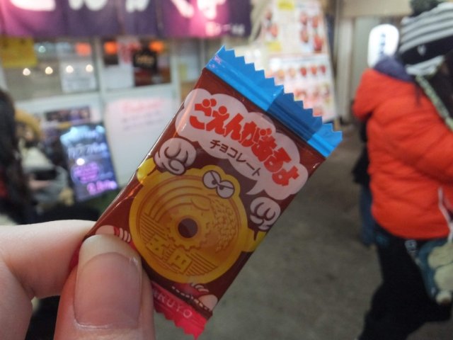 帰り際、お会計を済ませると「良かったらお一つどうぞ」アメちゃんかと思いきや、まさかの5円チョコでした!
