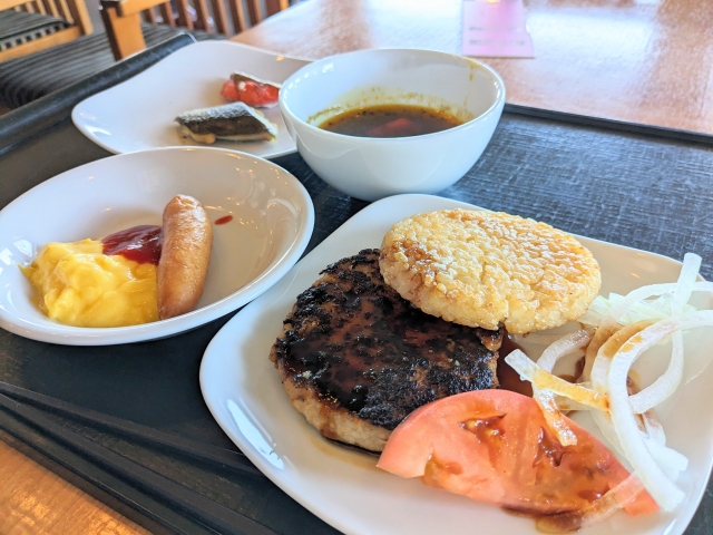 ちなみに朝ごはんもビュッフェでしたが、定番の朝食メニューに加えてライスバーガーが!自分で好きな食材を選んで作るという、とっても楽しいメニューでした。