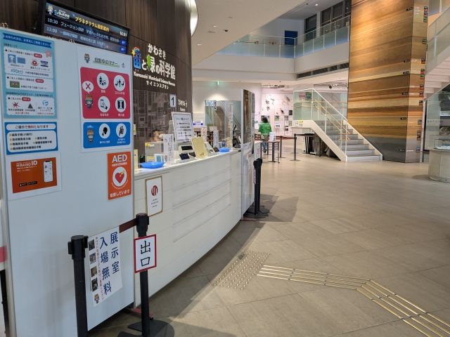 入るとすぐに受付があります。展示室は無料、プラネタリウムは400円。