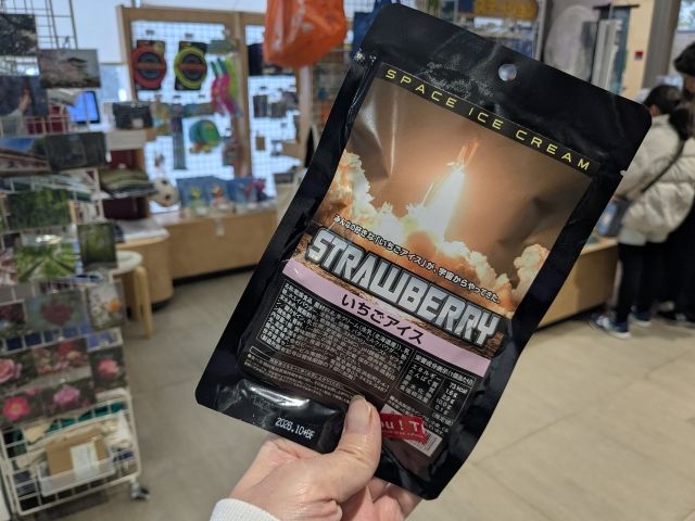 帰り際、ミュージアムショップで宇宙食の「ストロベリーアイス」買っちゃった!宇宙食のアイス、他では食べられない独特の風味と触感が大好きなんですー!!