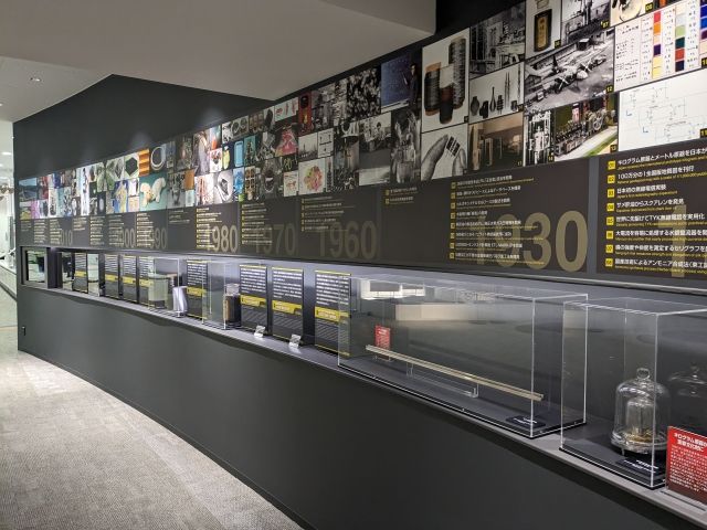 館内は一部屋だけのコンパクトな展示室。様々な技術が、実物や解説パネル、タッチパネルにて紹介されています。展示数はそれほど多くありませんが、無料ということを考えると満足度は高いです。