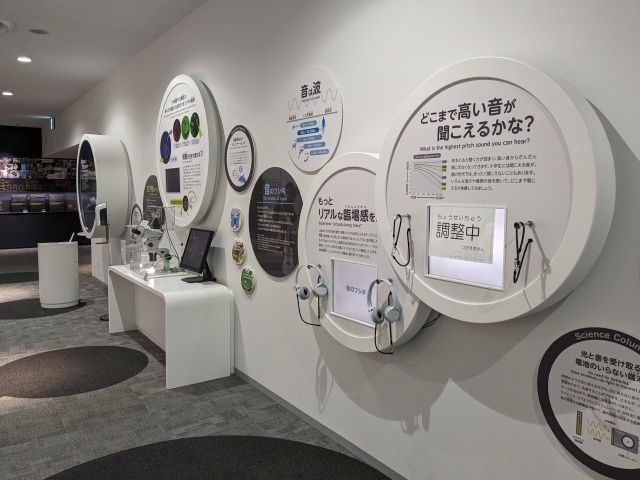 展示の一部には、実際にさわったり聴いたりして体験できるコーナーもあります。