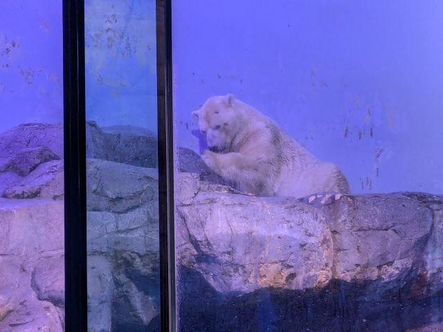 なんと、ホッキョクグマもいます!水族館でホッキョクグマに会えるなんてびっくりです。