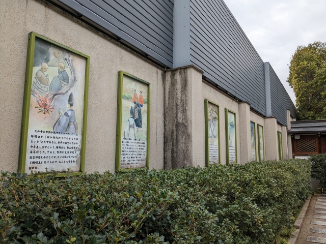 塀には、安倍晴明の様々なエピソードがイラスト付きで掲載されています。読んでいくと、晴明にどのような出来事があったかがわかりとても面白いです。