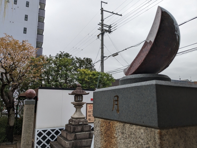参道の両サイドに立つのは日月柱。陰陽を表す「日」と「月」が象られた柱です。