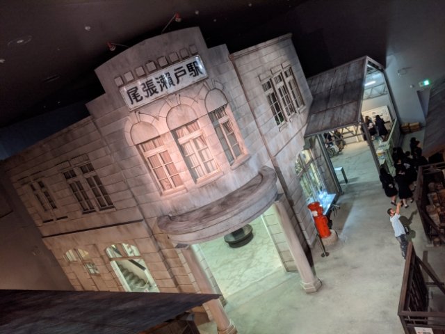 せとでんの後ろには、大正時代に造られた尾張瀬戸駅の駅舎も再現されています。当時、時代の最先端であった洋風建築は、異彩を放つとともにシンボルとして親しまれていました。
