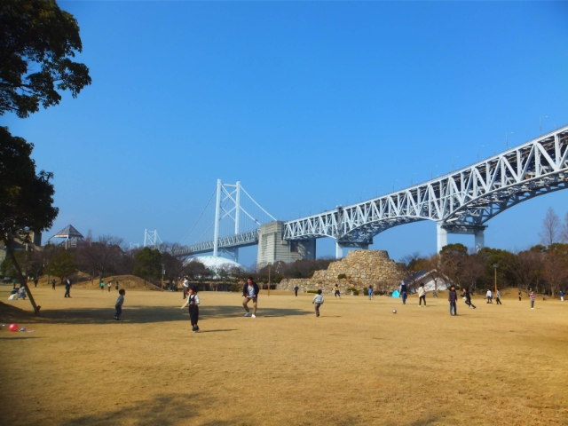 瀬戸大橋タワーは瀬戸大橋記念公園の中にあります。瀬戸大橋記念館や広い芝生広場があり、開放的な気持ちになれる公園です。
