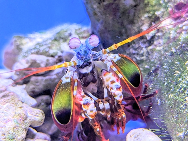 海に暮らすエビのような甲殻類。獲物を捉える独特な捕脚を持ち、「刺激型」と「打撃型」という2タイプが存在します。打撃型のモンハナシャコのパンチは貝を叩き割るほどの威力で、メディアで「凄い生き物特集」が組まれると、非常によく登場します。