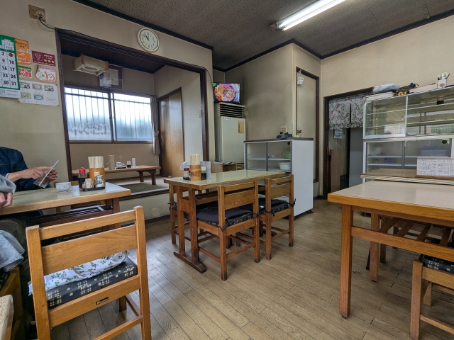 ザ・定食屋といった店内。4名テーブルが4席、1名テーブルが2席、座敷テーブルが1席と、席数はそれほど多くありません。祝日ということもあり11:10には満席!人気店なんですね。