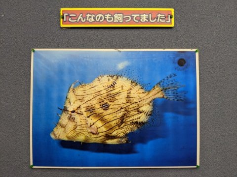面白いのが壁に貼られた「こんなのも飼ってました」シリーズ。かつてこの水族館で飼育していた生き物を紹介しているのですが、ありそうでなかったユニークな展示です。