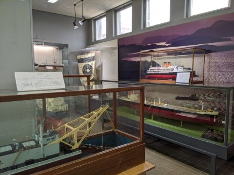 船の模型が並ぶコーナーもあり、戦国時代の亀甲船や、かつて宇野〜高松間を運行していた連絡船など幅広い時代のさまざまな船が並びます。