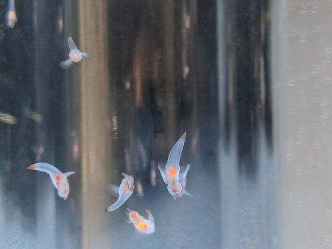 クリオネことハダカカメガイもいます。北海道の水族館ではほぼデフォルトで飼育されていますが、西日本ではなかなかレアな展示なのではないでしょうか。