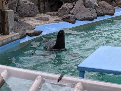 ぐるぐるまわるキタオットセイ。アザラシよりスピード感あります。こちらも2匹おり、オスとメス。名前は「うらちゃん」「おとちゃん」という浦島太郎感あります。