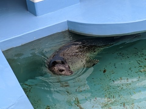 すいーっと泳ぐゴマフアザラシ。2匹飼育していますが、どちらもメスで、「ゆめ」&「みらい」というとっても華やかな名前がついてます。