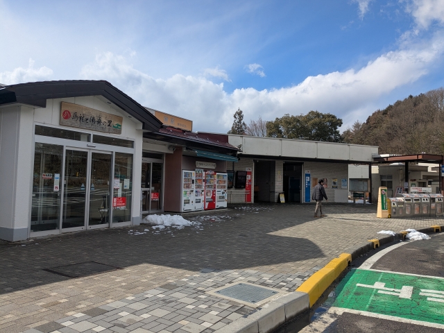 何か所か渋滞ポイントがあるも、山梨県に入ったあたりからはすいすい。山間部に入っていくと、時折雪がちらつきはじめました。