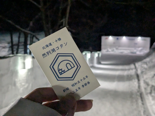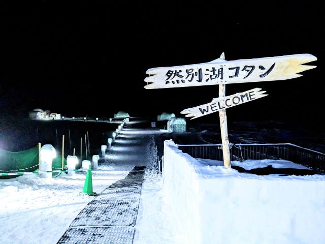 そんな湖の上に冬季限定で開かれるのが「しかりべつ湖コタン」。2025年の開催期間は1月25日(土)~3月16日(日)の約2ヶ月。1月〜2月は9:00〜20:00、3月は9:00〜18:00と、他のスポットに比べると遅い時間までオープンしています。ということで、日中に帯広市内の観光スポットをめぐった後、18:00頃に訪れました!