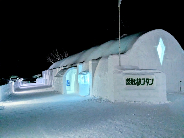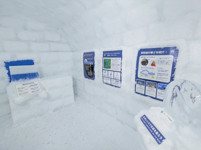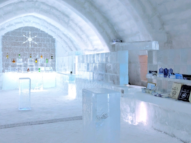 凍結した湖の上に立ち並ぶのは氷でできた家!それぞれバーであったり露天風呂であったり宿泊施設であったりと、様々な機能を備えています。美しい氷の世界が体験できる、冬の北海道ならではのイベントです。