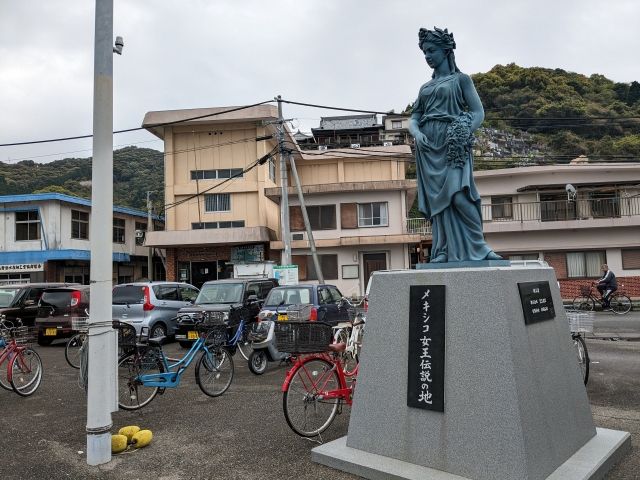 港に立つ洋風な像、こちらはメキシコ女王の像。なぜメキシコ女王の像が立っているのか、それにはこんな伝説があります。