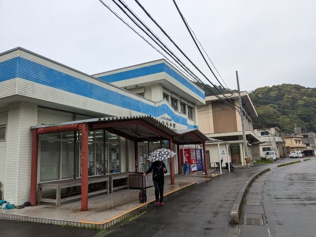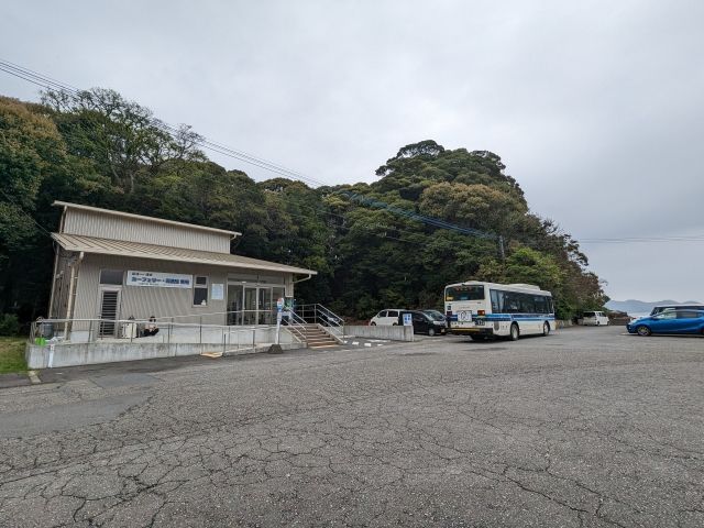 こちらが浦城港の乗船券販売所。自販機とトイレ、バス停もあります。