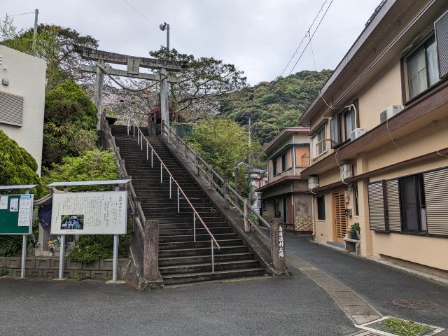 集落内に鎮座する島野浦神社。綿津見命を祀っており、綿津見神社とも呼ばれていたそう。この神社の裏が、遠見場山の登山口となっています。