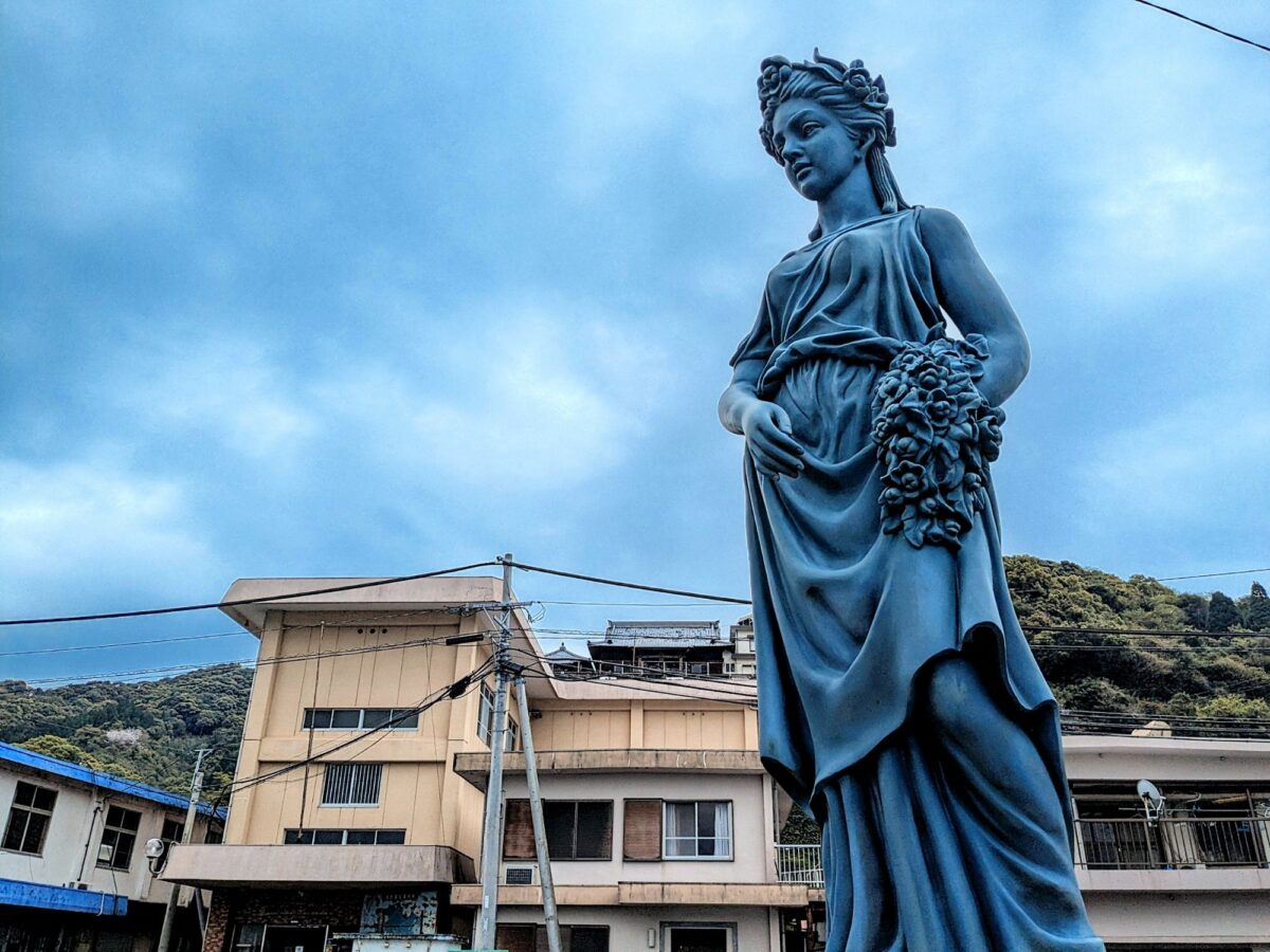 宮崎県最大の離島・島浦島。船の本数も多く、乗船時間もわずか10分と気軽に訪問できる離島です。今回は日帰りショートステイで訪問。島の港に立つ銅像には、不思議な伝説が残されていました。