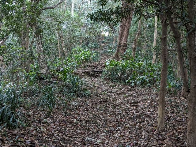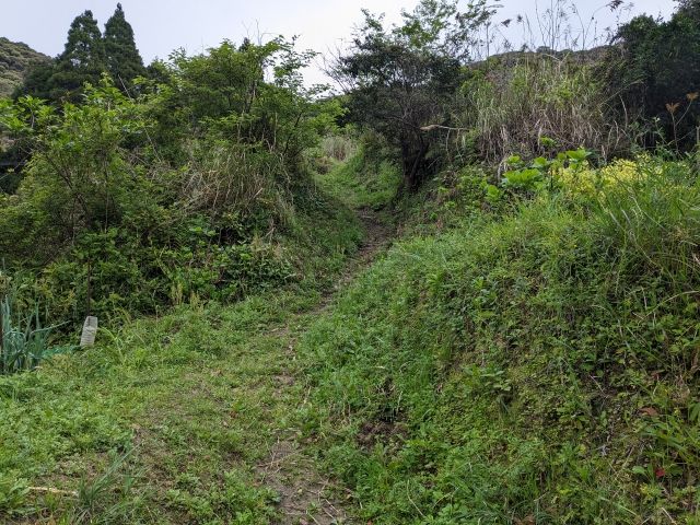 まだ時間があるので、もう少し先まで進んでみます!灯台の案内板によるとヒダラ松20分、波越展望所30分とのこと。ここからは緩やかな上り下りが続きます。尾根伝いを歩いているような感じです。