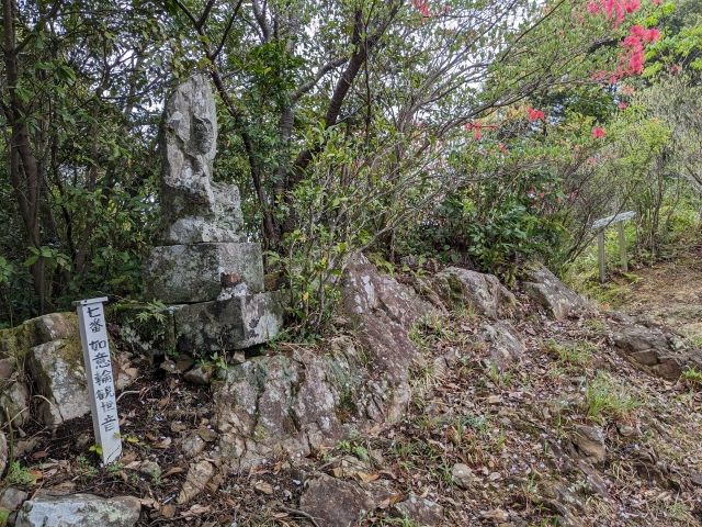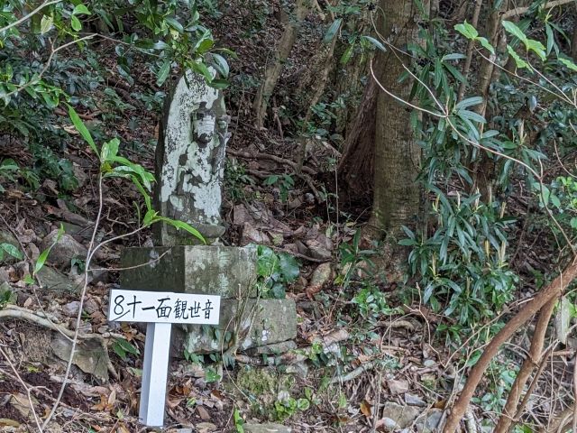 ベンチから左へ進むのが山頂ルートですが、ちょっとだけ右へ進むと8番観音の十一面観世音が姿を現します。この遠見場山には『島野浦西国三十三観音巡り』という札所があり、観音巡りができるコースになっているのです。