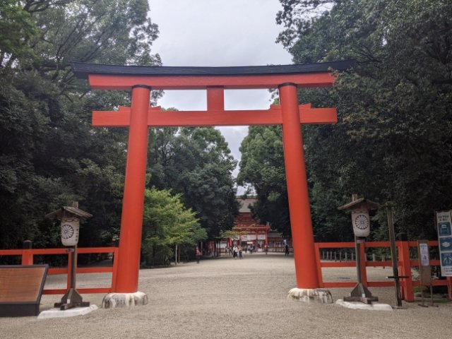 車の場合は京都東ICより19分(渋滞が無ければ)。オフィシャルな西駐車場は本殿のすぐ近くにありますが、糺の森を抜けて参拝したい方は、周辺のコインパーキングに停めるのがおすすめ。(西駐車場は30分200円ですが、コインパーキングは40分200円のところもあります)