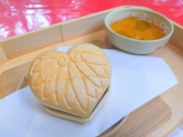 こちらは「葵の最中」。まるでハートのような御神紋の最中に大納言小豆葵をたっぷり挟んだ最中です。サックサクの最中と、ひんやり冷たい粒あんがとっても美味!(私はこしあん派なのですが、これは美味しく食べることができました・・・!)