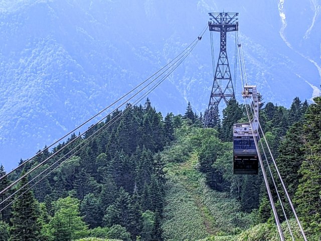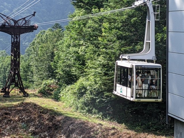 全長2,598m、高低差848mを約7分で上っていきます。なかなかの高低差があるため、途中で耳がキーンとなります。