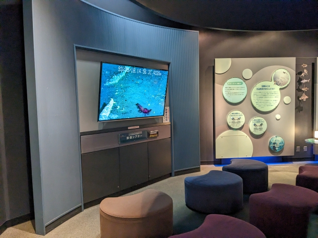 映像シアターでは、深海生物の貴重な映像が流れます。わかりやすい解説もついているので、テレビ番組みたいな感覚で気軽に楽しめる内容に仕上がっています。
