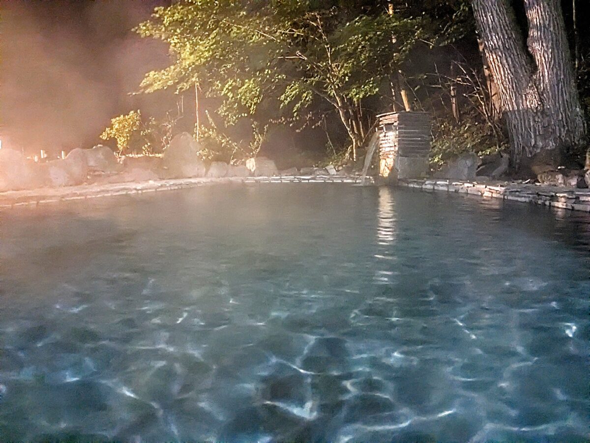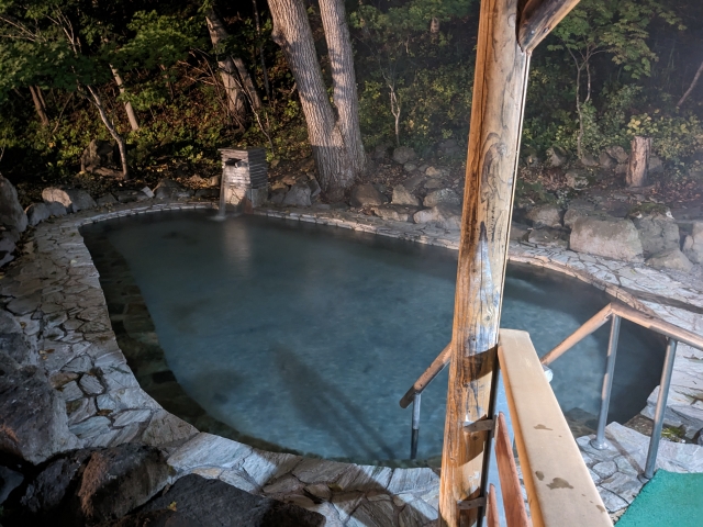前述の通り市街地から遠く離れているため、客室も温泉も非常に静かです。特に日帰り利用時間が過ぎた20時以降になると、ときおり動物の鳴き声が聴こえるくらい。日頃の喧噪を忘れてゆったり過ごすにはぴったりの温泉で、普段都会暮らしをしている私にとっては「夜ってこんなに静かだったんだ」ということを思い出させてくれました。
