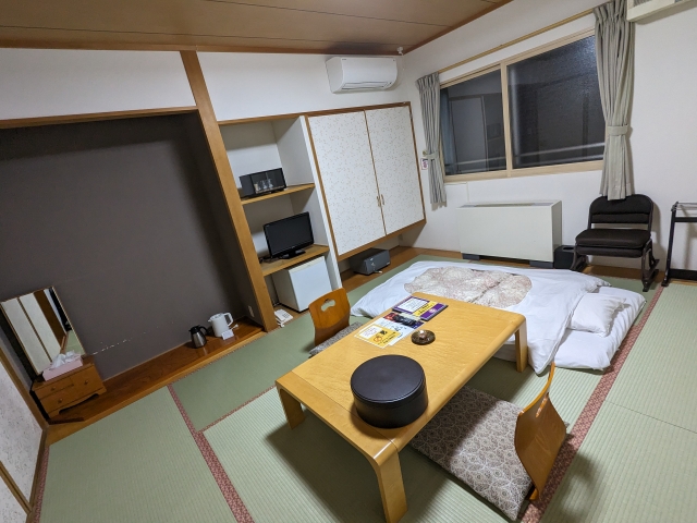 今回宿泊したのは2階和室。シンプルなザ・和室といった趣の8畳のお部屋。