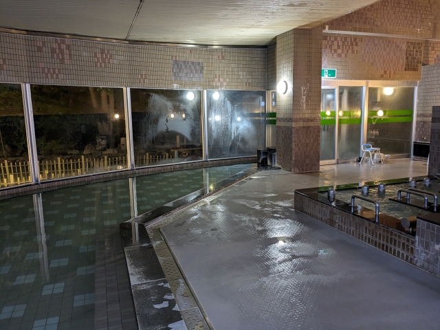 こちらが大浴場。ガラス張りの大きな窓に沿うように大きな内湯が広がっており、外の景色をたっぷりと楽しむことができます。