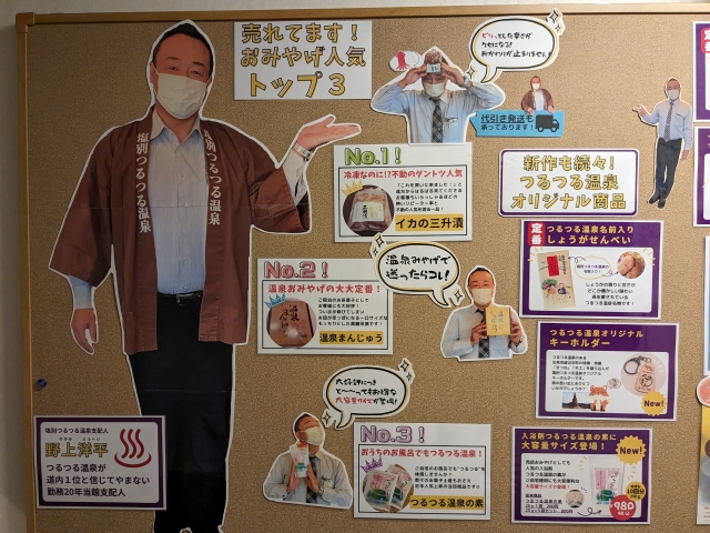 廊下に貼られていた「おみやげ紹介」もとってもユニーク!楽しい雰囲気でなおかつわかりやすいデザインがとっても素敵です。
