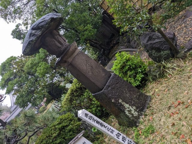 白池地獄の周りにはきれいに手入れされた和風庭園が広がります。庭園を歩いていると目に入ったのはこちらの石塔。