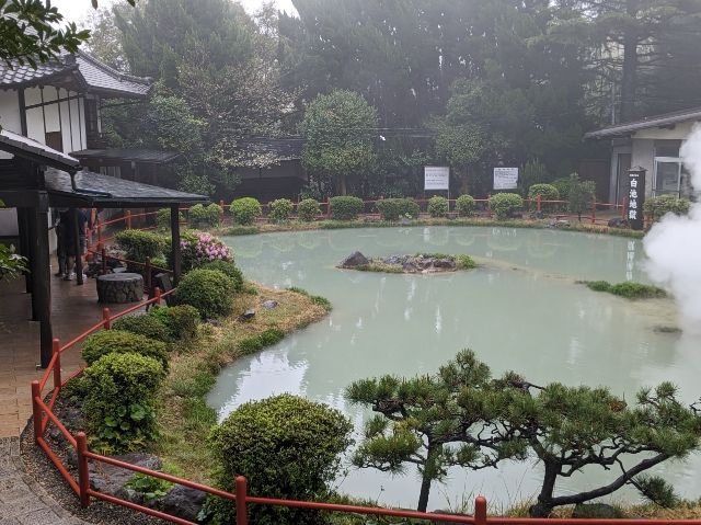 1931年創業の白池地獄。創業者が田園地帯で掘り当てたもので、当初は「玖倍理(くべり)地獄」とも呼ばれていました。