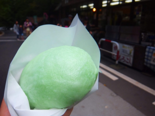 正解はわさび肉まん!あざやかな緑色をした、ちょっとだけピリッとする甘口肉まんでした。