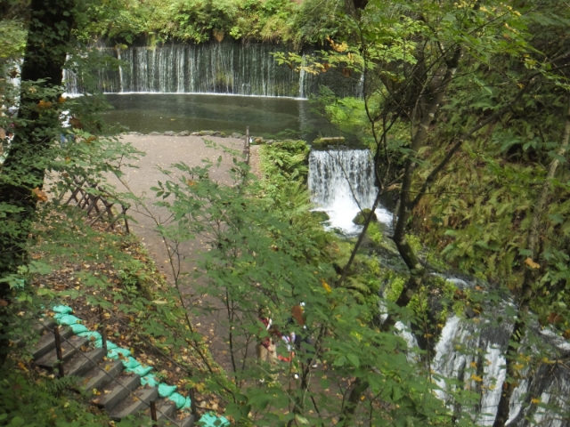 来るときは先ばかり見ていて気がつきませんでしたが、白糸の滝の手前には段になった滝が続いています。
