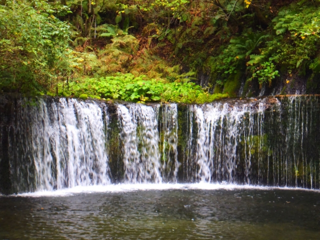 きっとこの滝を見た多くの人が感じるのは「思ったよりも小さい・・・」。そう、この白糸の滝の落差はわずか3m。非常に小さな滝なのです。