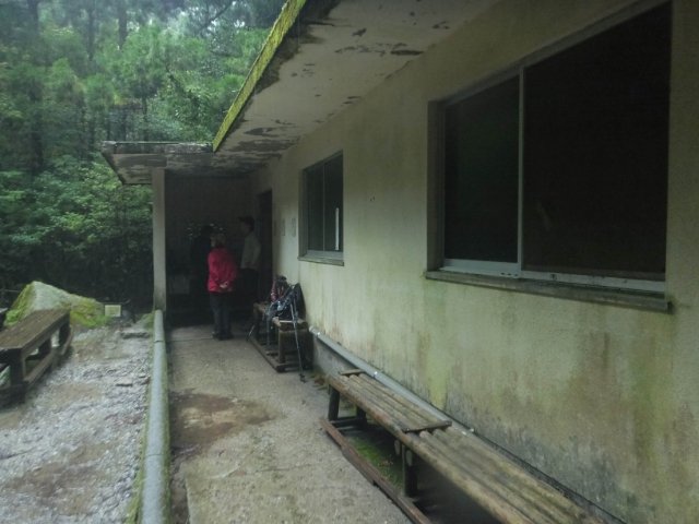 木々の奥にある休憩所の白谷小屋。中は真っ暗ですがトイレもあるので、宿泊も可能っぽいです。でも、登山口から1時間ほどの地点で宿泊ってあまり思い浮かばないような・・・。今でこそ車で登ってくることができますが、かつてはもっともっと麓の方から登る必要があったと聞いたことがあるので、そのときに利用されていたのかもしれませんね。
