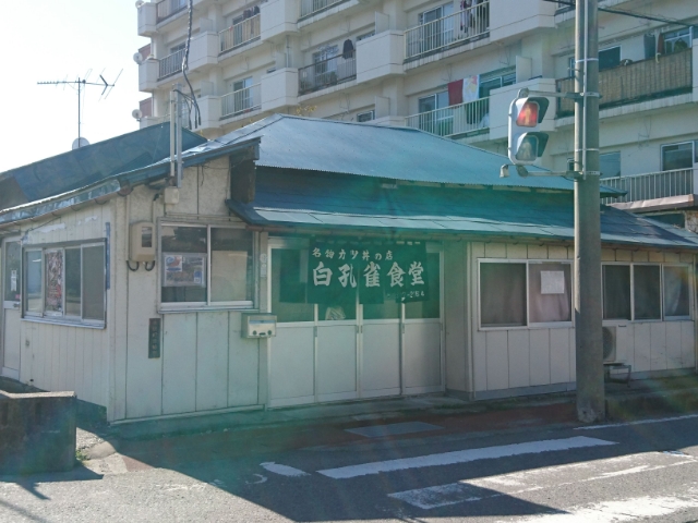 そんなソースカツ丼ですが、福島ではかなりポピュラーのメニュー。レストハウスや食堂などでもよく見かけるため、かなり気軽に楽しめます。でも、せっかく会津まで来たからには専門店に行ってみたい・・・。ということでおなじみ旅行雑誌「るるぶ」で見かけた有名店・白孔雀食堂に行ってみることにしました。