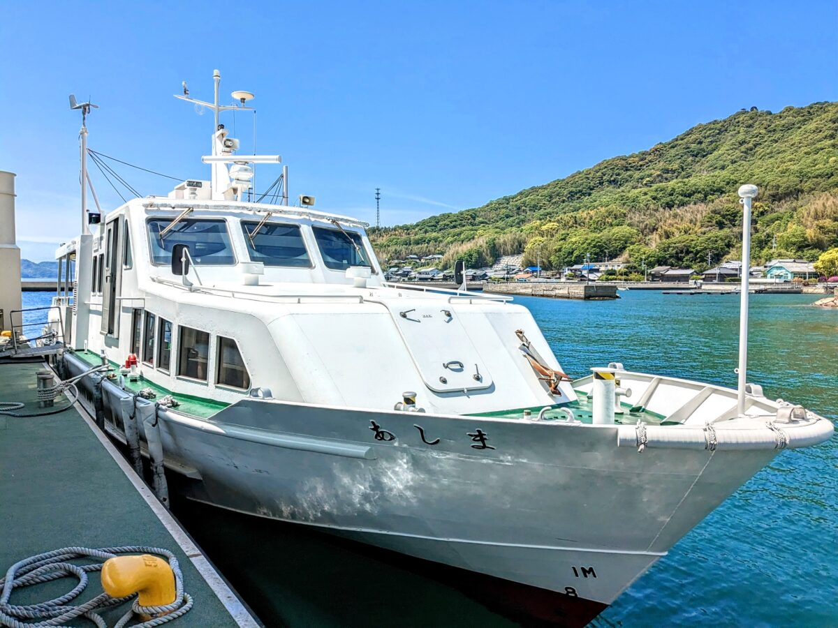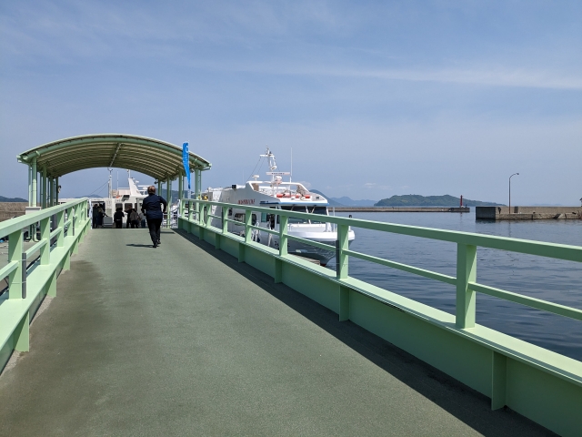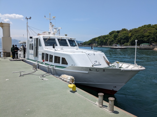 こちらが志々島と粟島へ向かう船。小型の高速船です。これまた急いでいたので写真が撮れず、志々島到着時に撮影した写真になります。