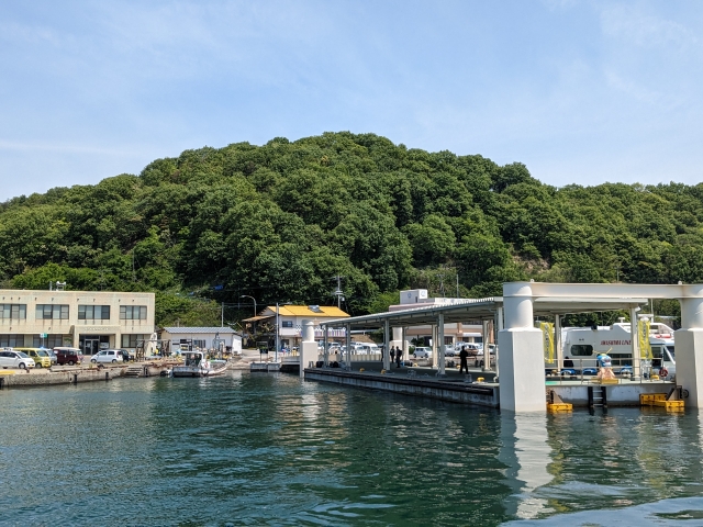 この2つの島は、同一の航路で結ばれています。四国本土の「須田港」を出航したフェリーは、粟島の「粟島港」「上新田港」、志々島の「志々島港」を経由して四国本土の「宮の下港」へ。そのまま折り返して逆順で寄港していく航路。