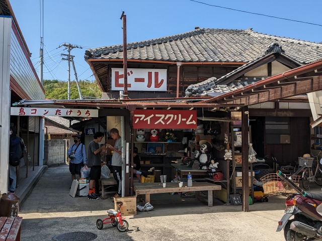 港のすぐ近くにある島コンたけうち(武内商店)。食料品や飲み物などがそろう、島の貴重な商店。GWということもあり、とてもにぎわっていました。