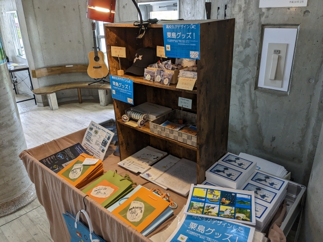 おみやげコーナーの近くには、粟島オリジナルグッズも並んでいます。「粟島缶バッジ」や「粟島キャップ」、「粟島トートバッグ」、さらには「粟島いろはカルタ」まで。高校生、大学生がデザインしているそうです。