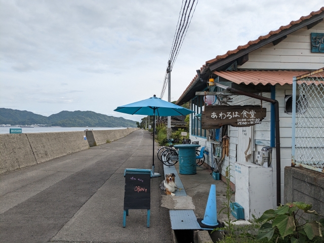 ル・ポール粟島、粟島海洋記念館の少し先へ進むと、海辺に立るあわろは食堂が見えてきます。